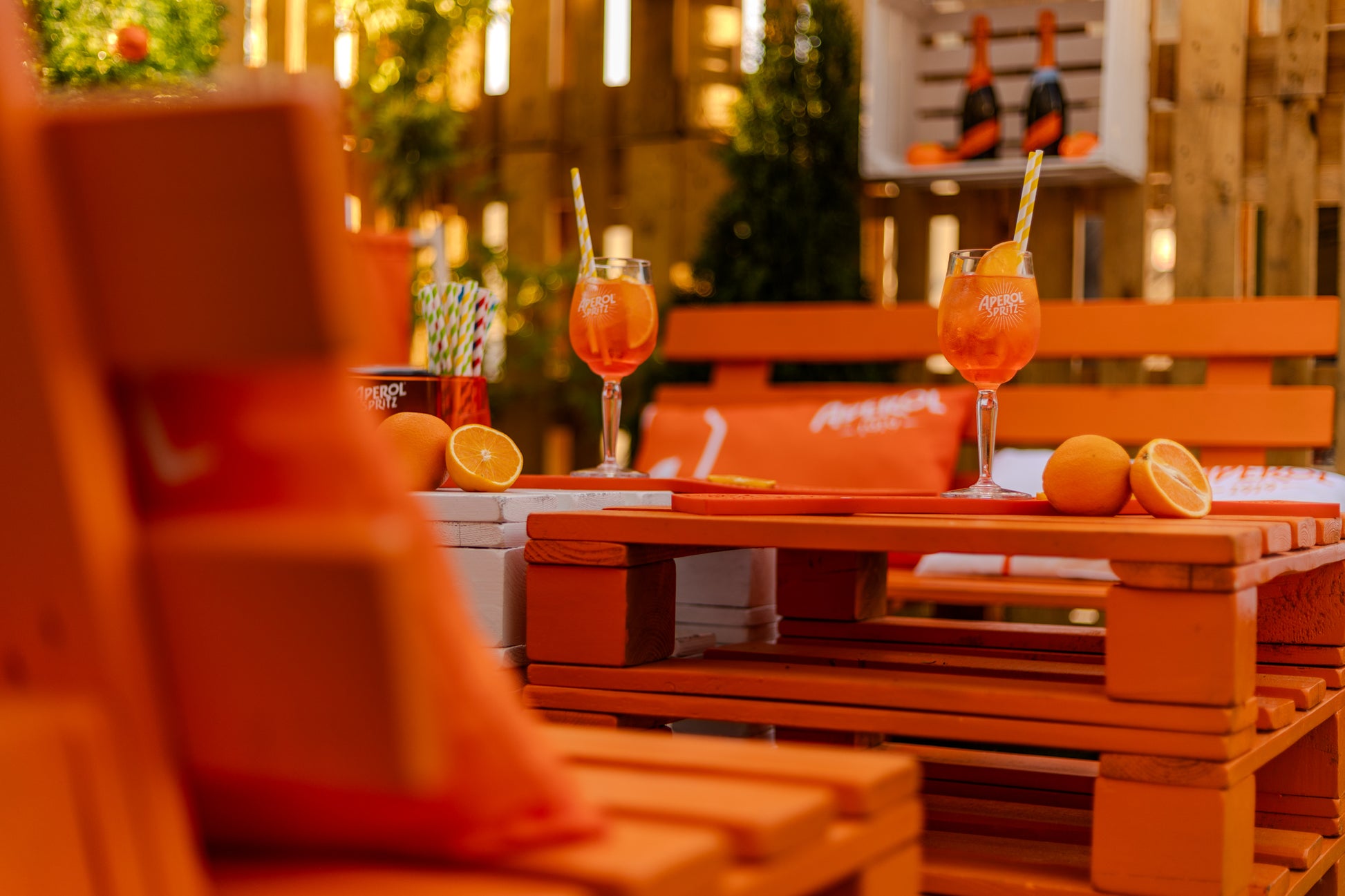 Pełny zestaw Aperol Spritz w firmowym kartonie Aperol — dokładnie taki, jak w barach i restauracjach we Włoszech. Odpowiedni na większe imprezy, do lokali gastronomicznych lub na elegancki prezent.